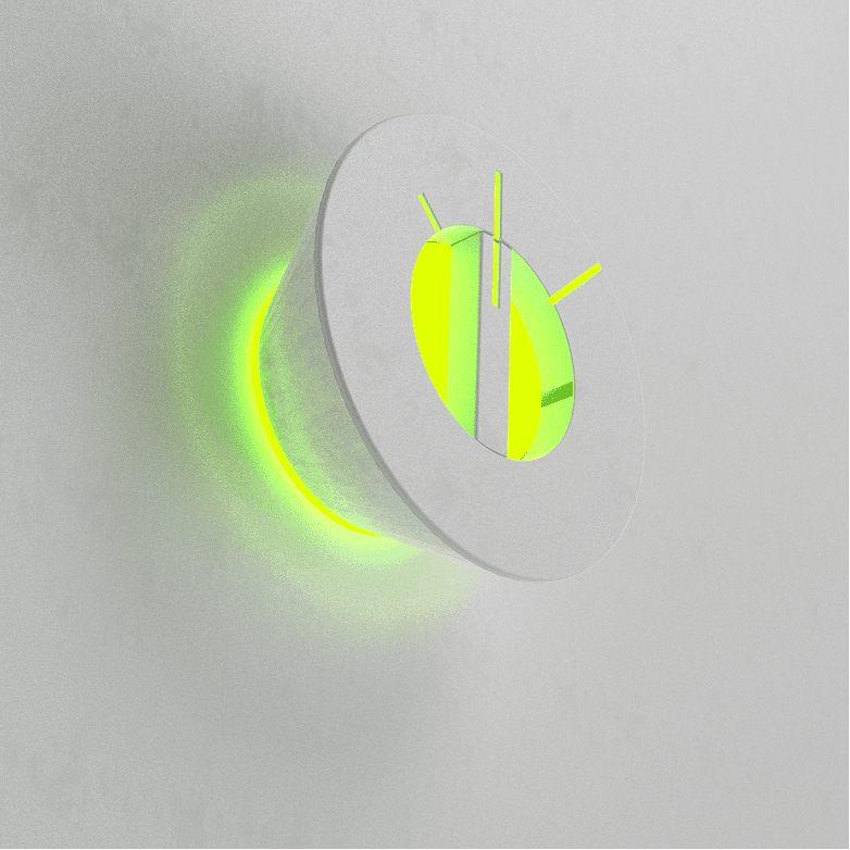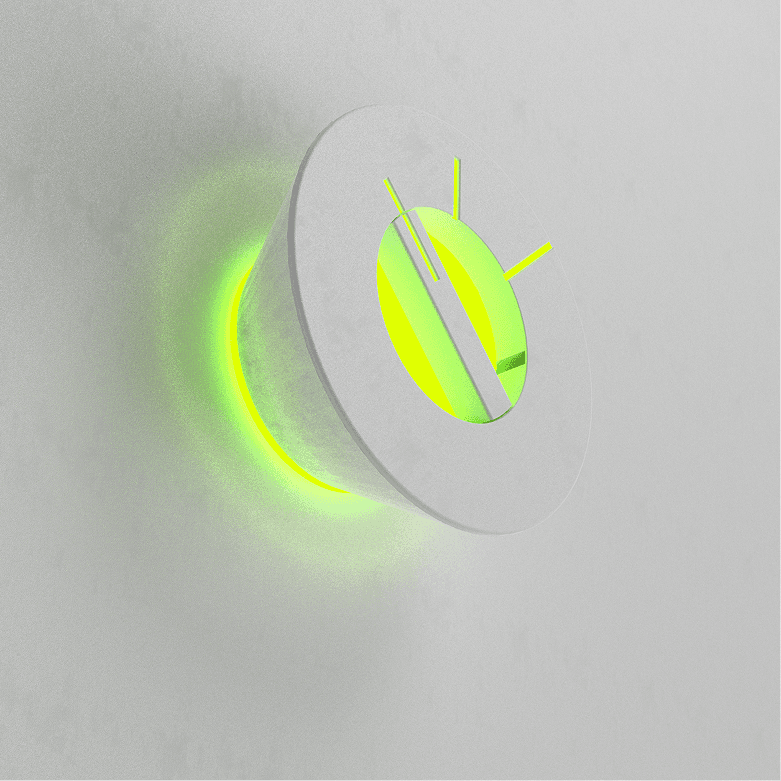 Designed for an underwater society, the emergency alarm emits a strong blinking side light and ambient illumination that spreads across surrounding surfaces for high visibility. Internal lighting and varying signal lengths clearly indicate different levels of urgency.
