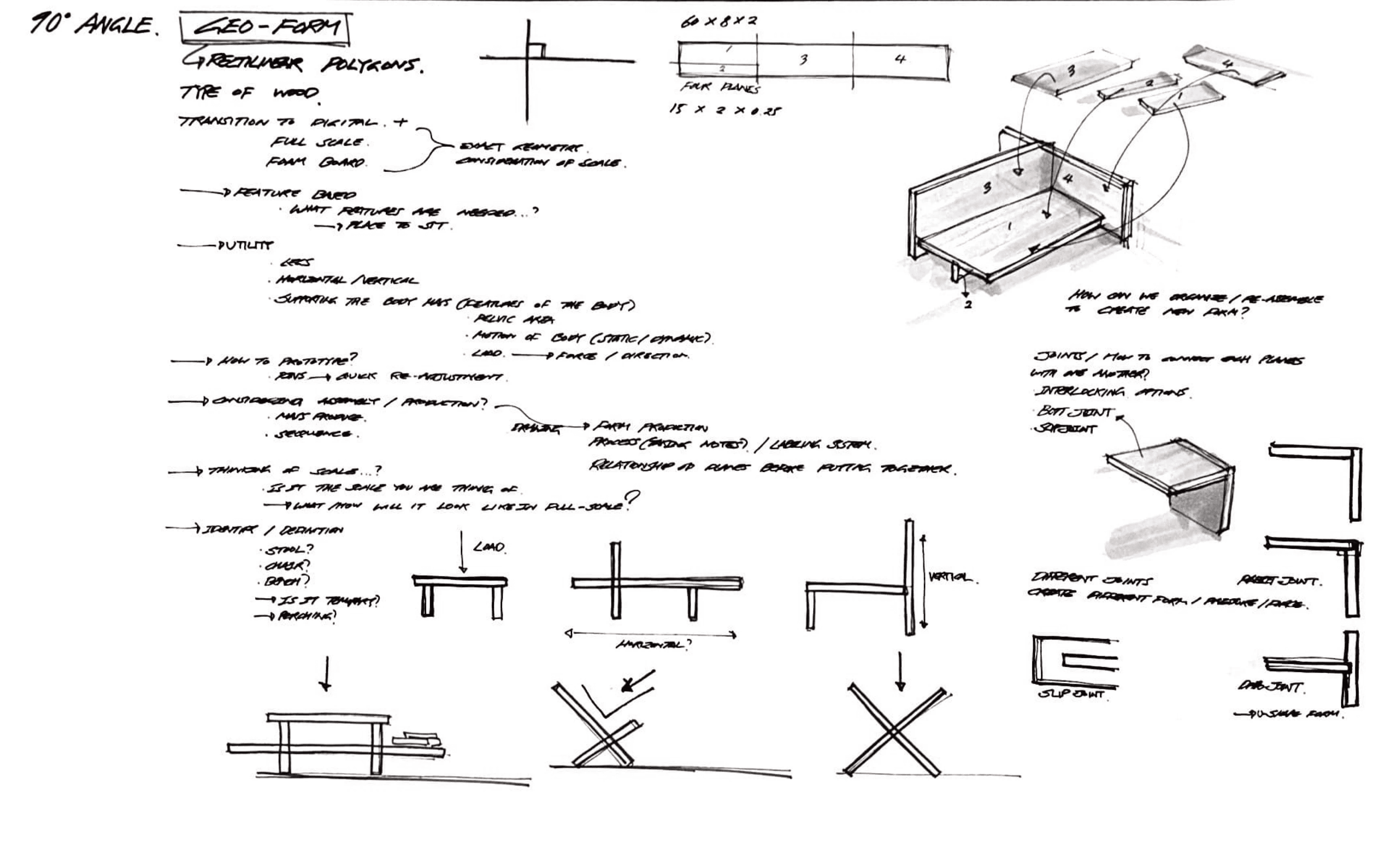The Geo-Form was developed through intentional investigation using small-scale physical prototyping, guided by specific ratios and dimensions, as the project required a sense of “certainty.” I began with small prototypes and drawing to narrow down precise forms, then returned to prototyping to refine proportions and explore the given dimensional constraints.