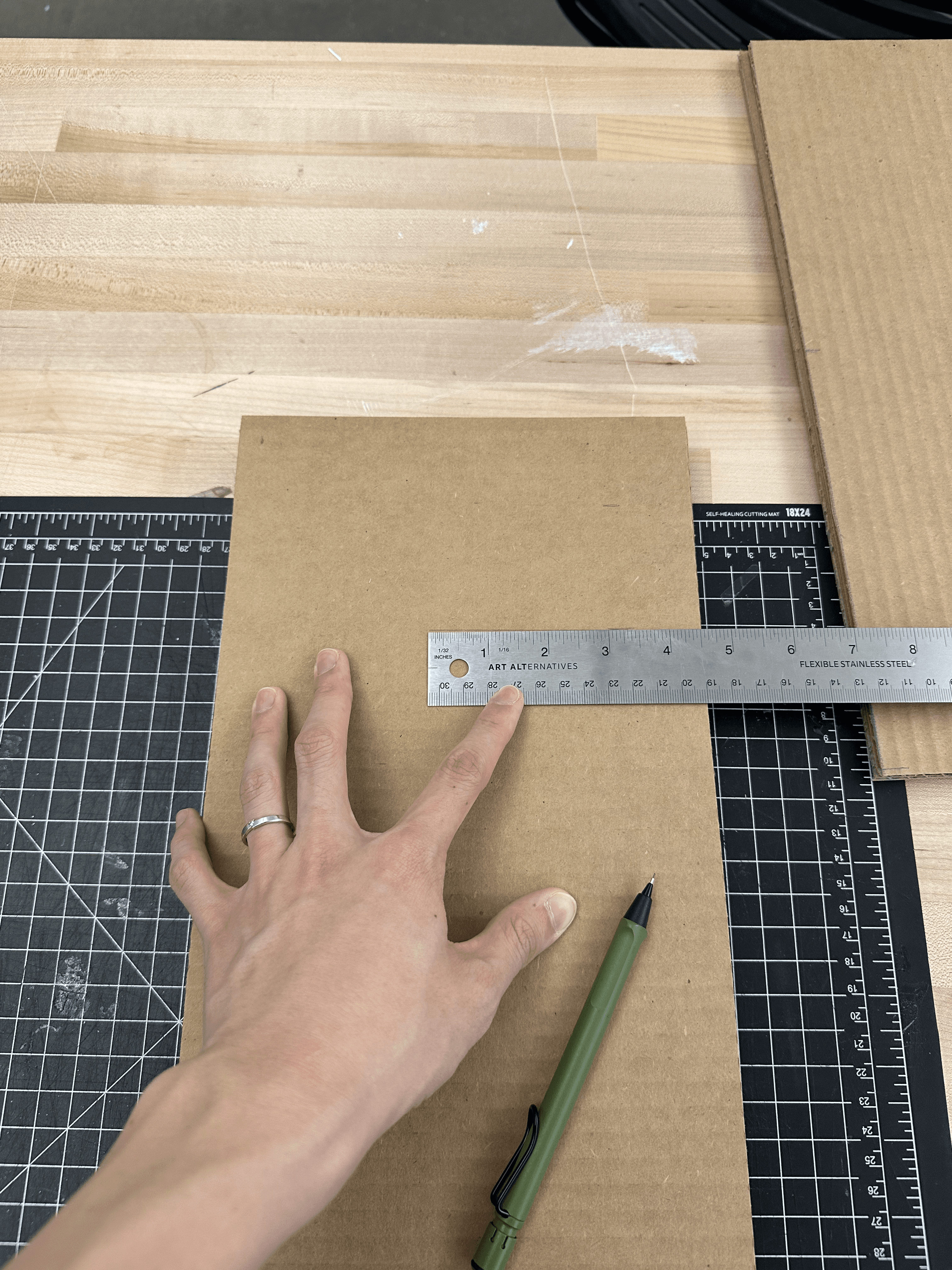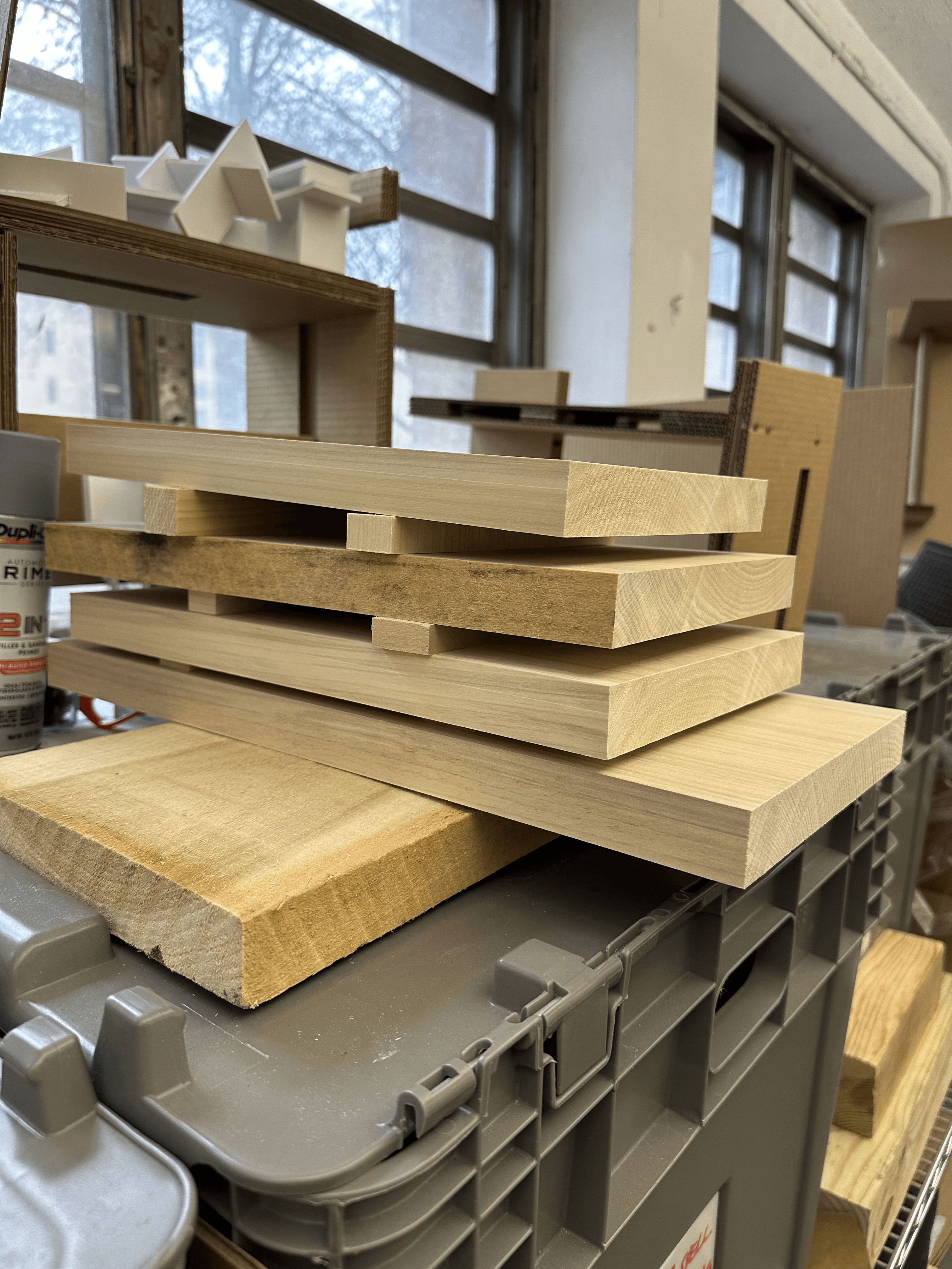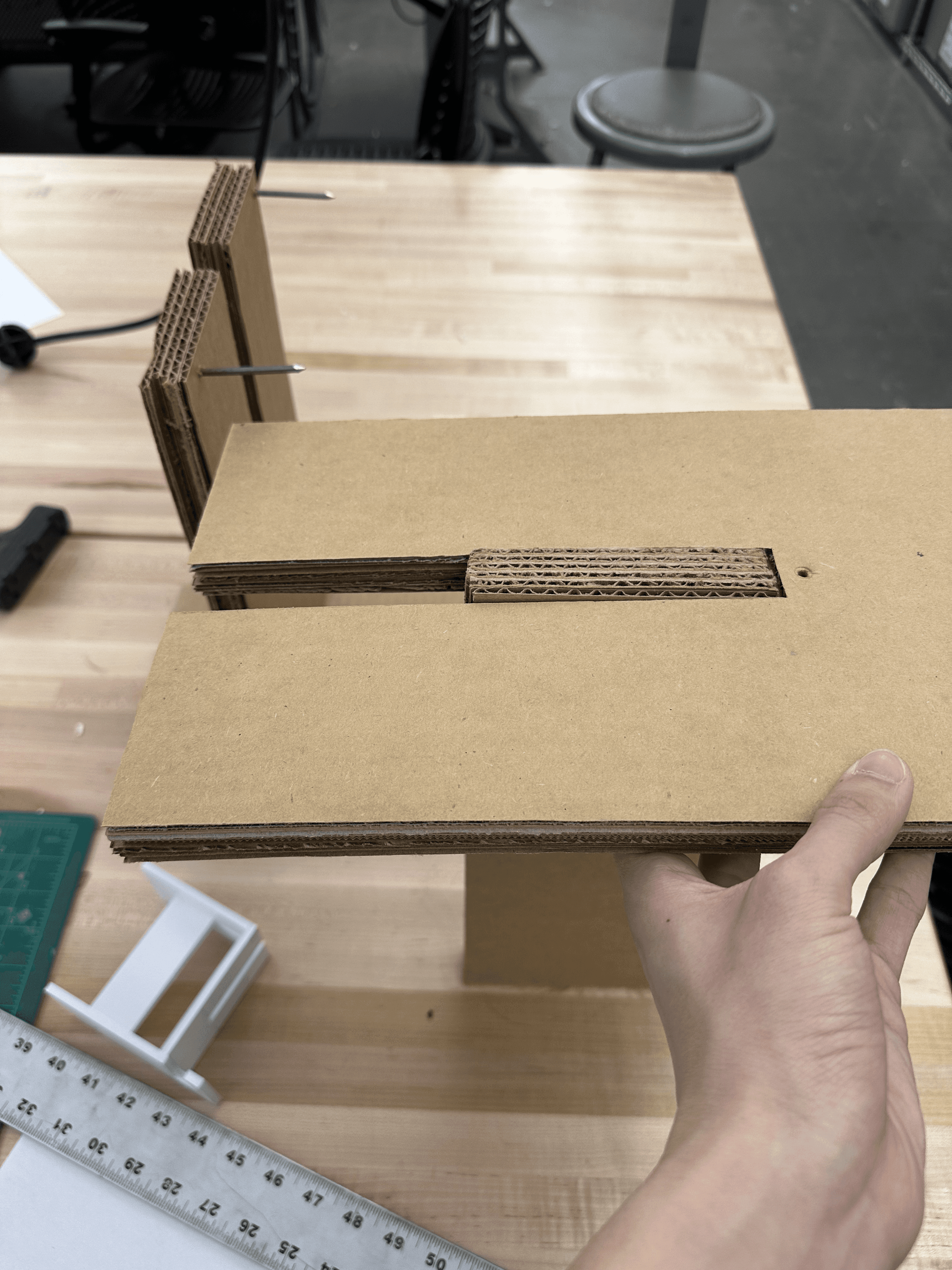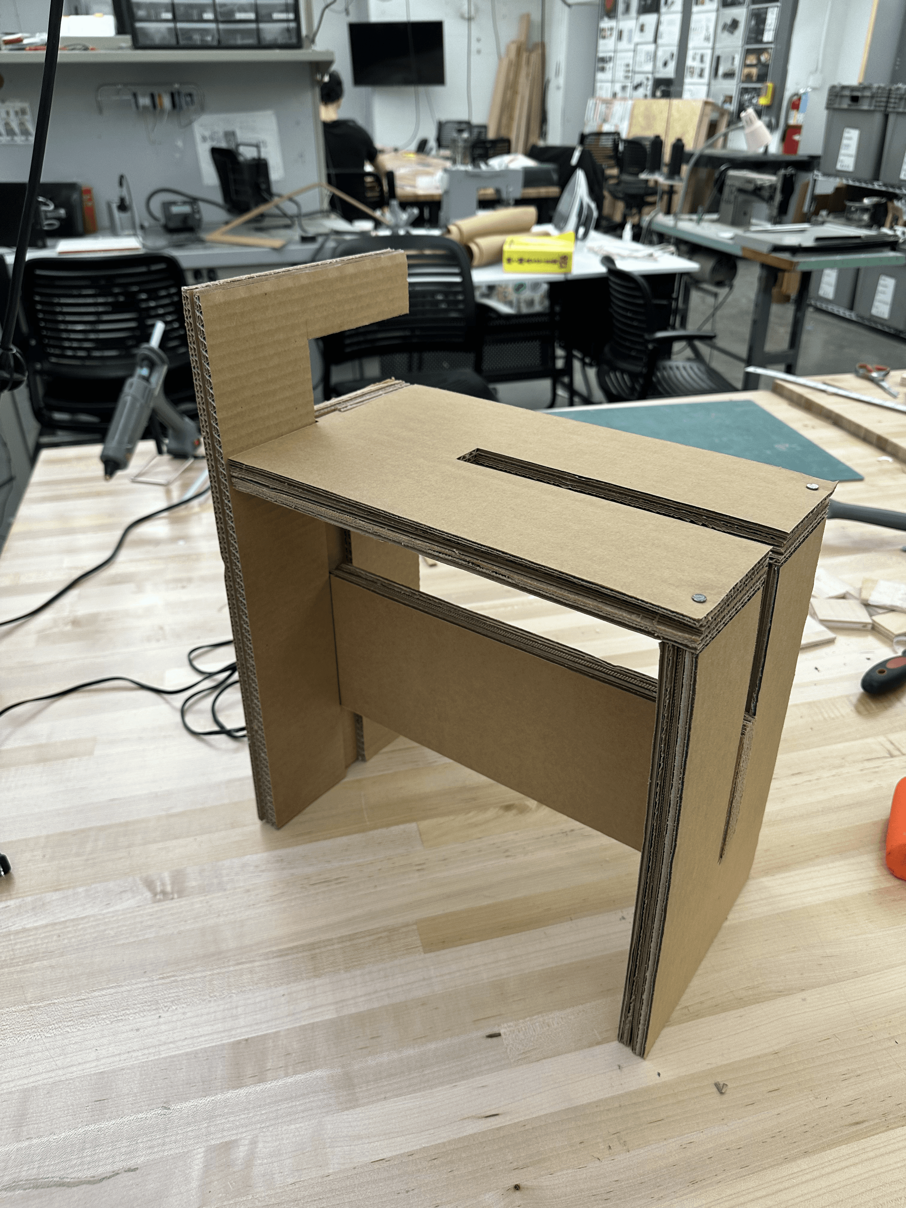 Creating a full-scale cardboard model helped me understand how the form would translate at actual size, while also allowing me to consider joint details and briefly practice the wood-making process.