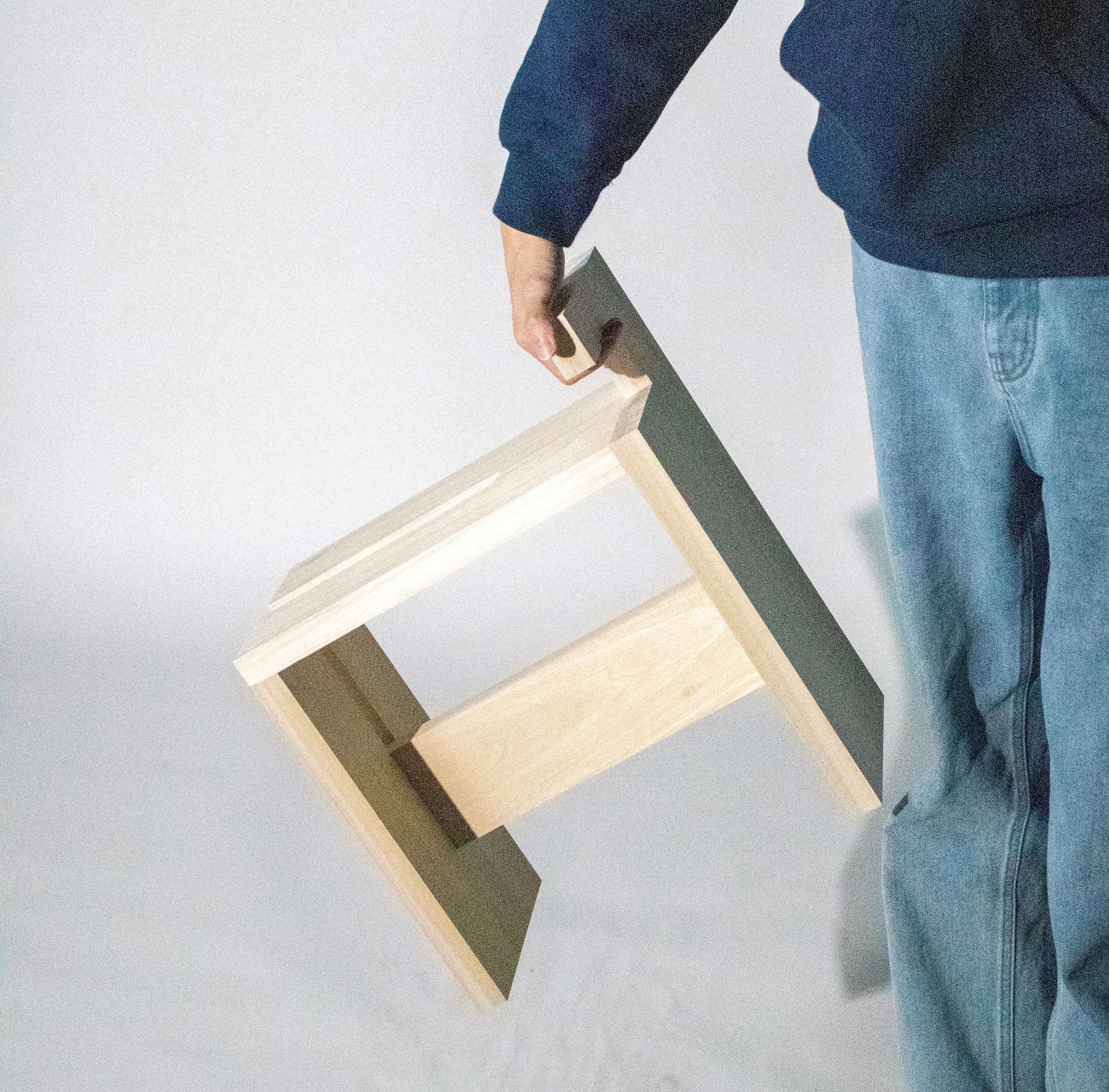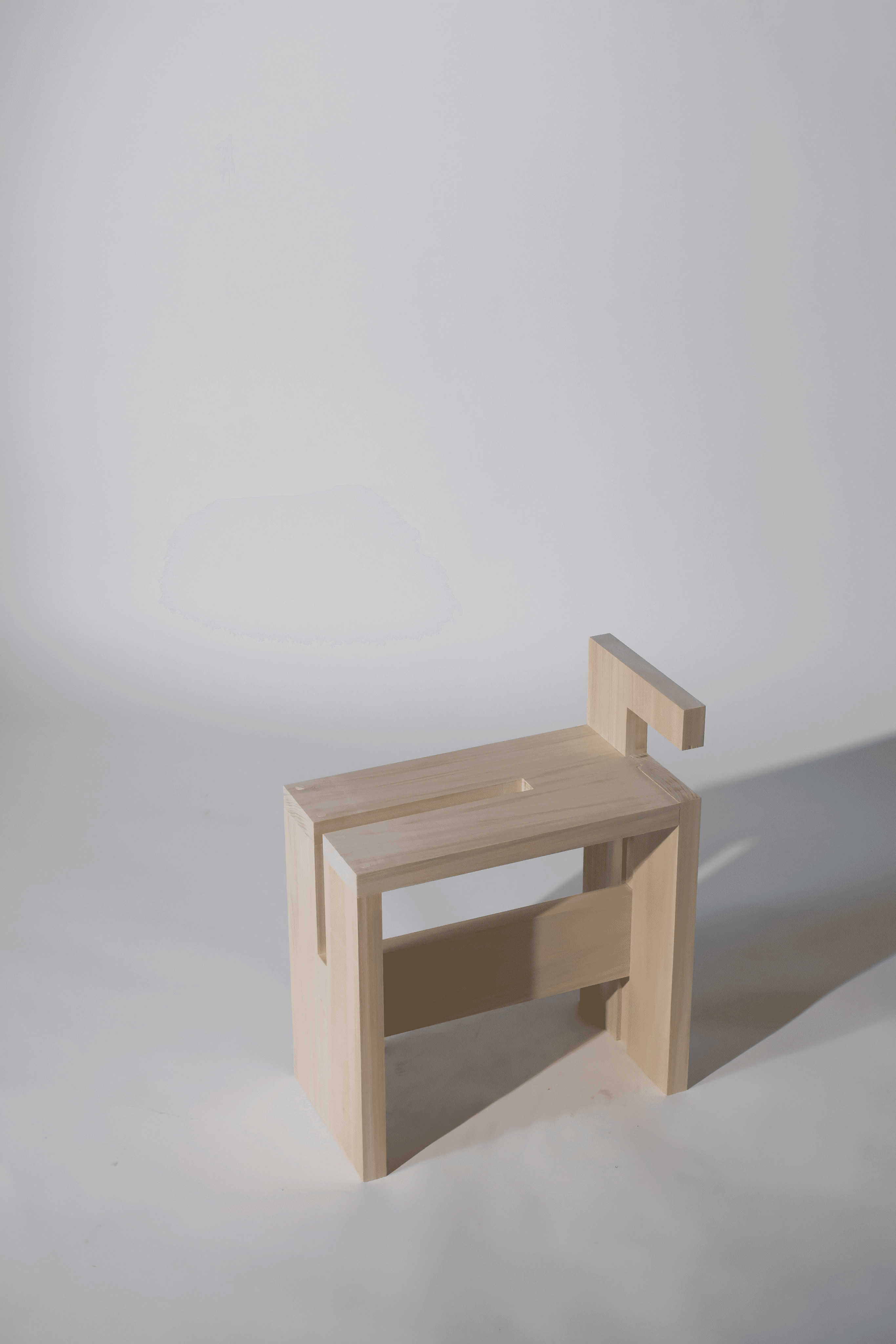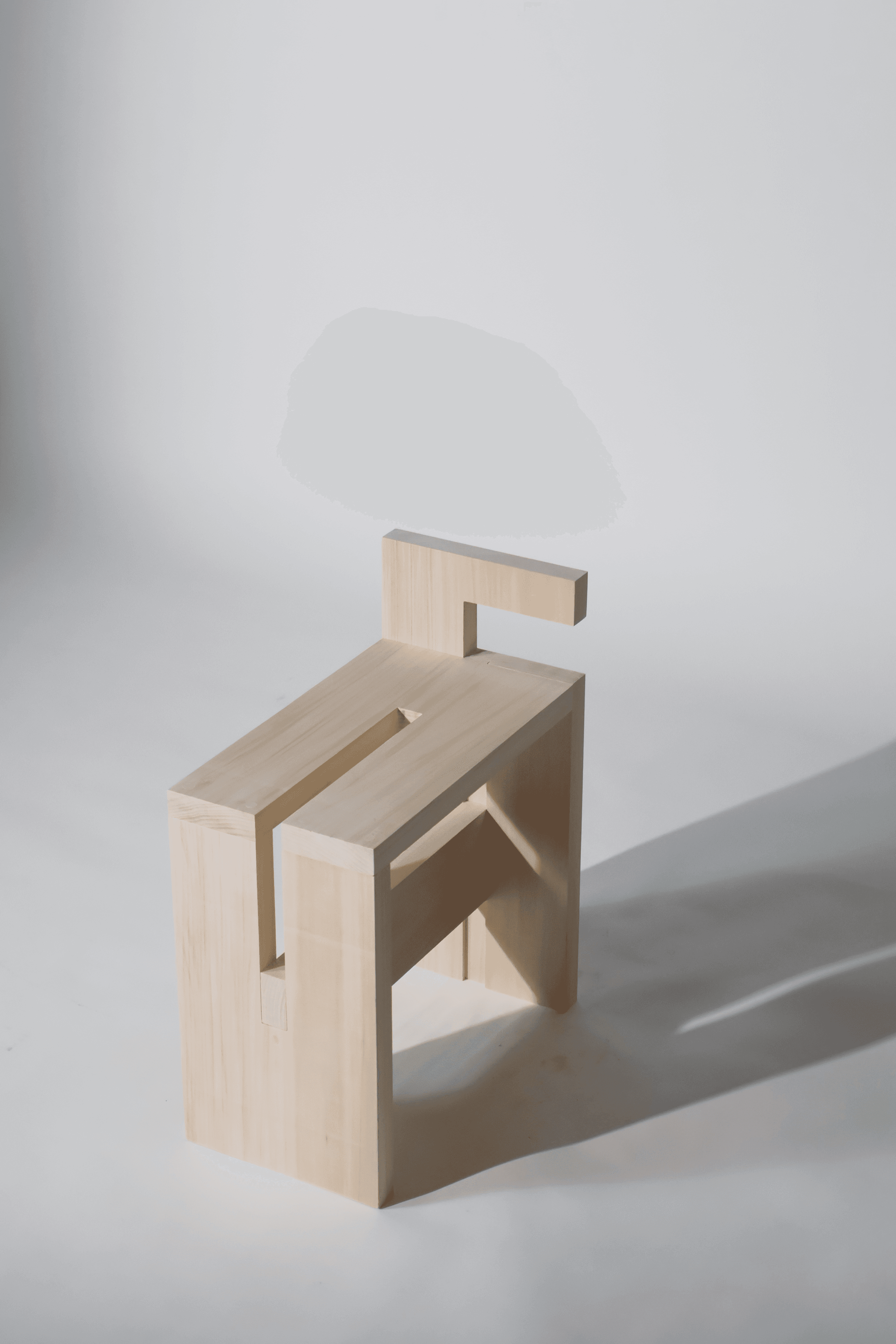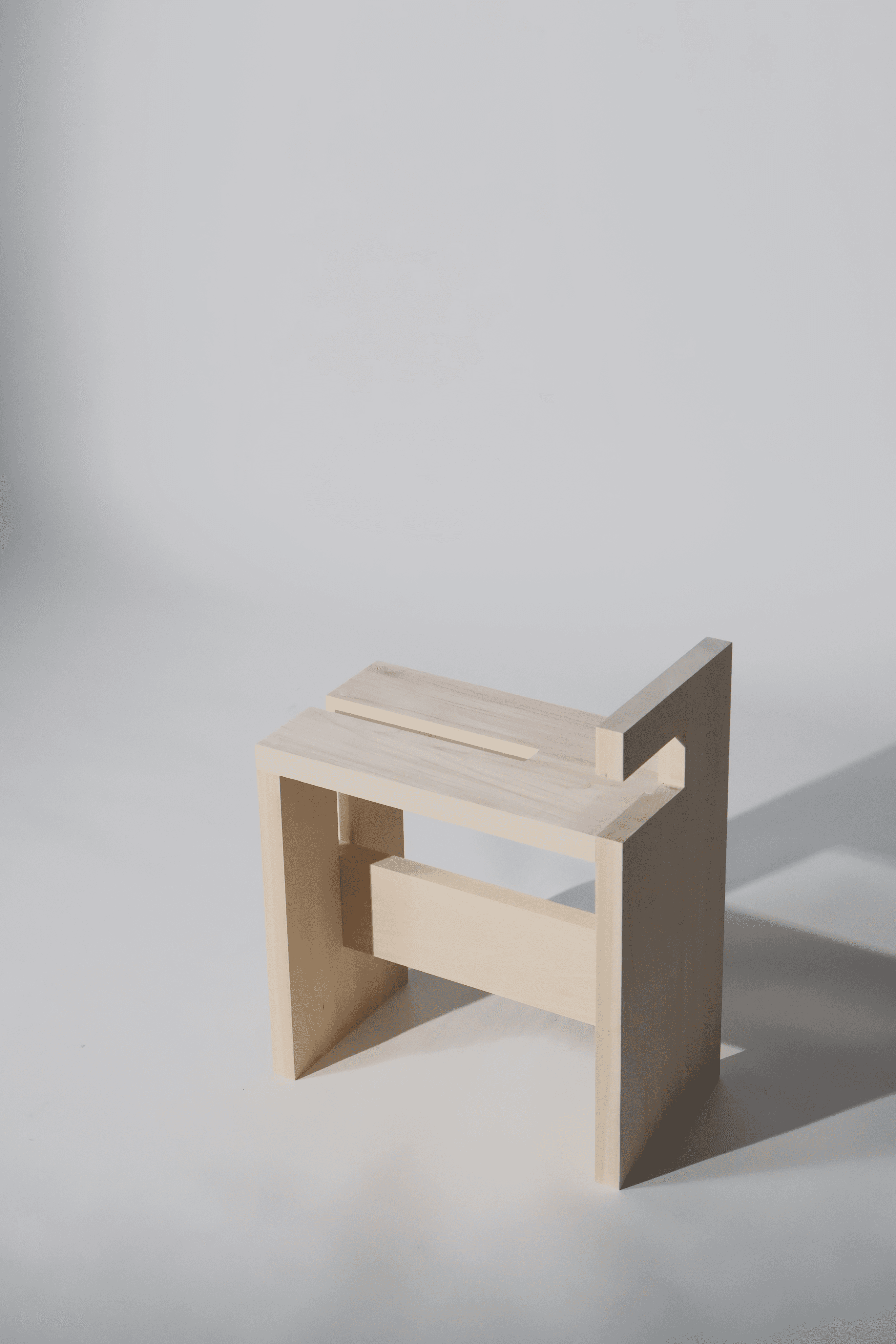 The Geo-Form is intended as an exploratory project for students to engage with geometric aesthetics and functionality under strict constraints, while gaining hands-on experience with different woodworking machines and joint types. The four-board stool is designed for easy mobility, featuring an integrated handle that also functions as a backrest, and is intended to blend seamlessly and naturally with its surrounding environment.