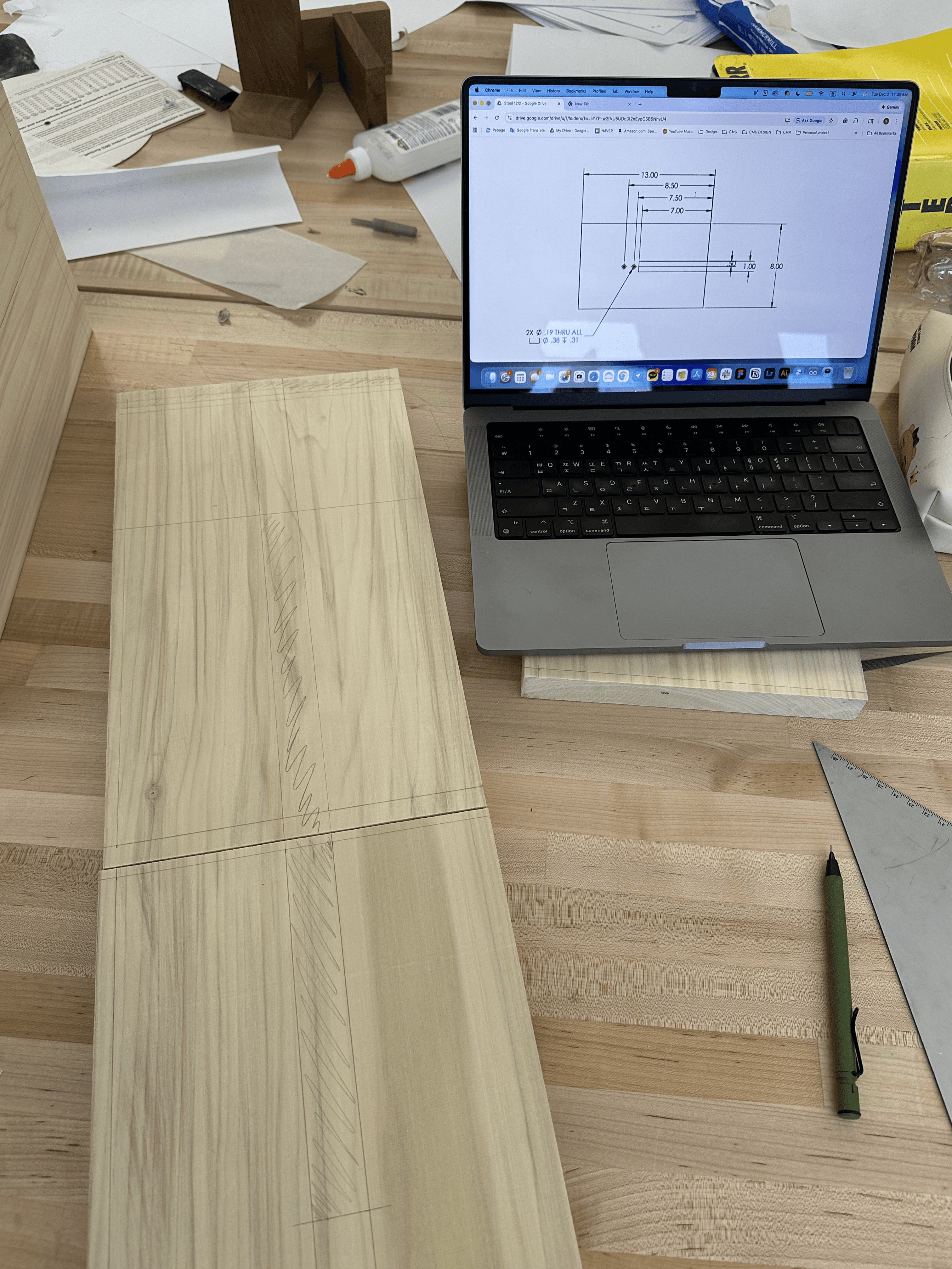 The technical drawings I designed planned out precise dimensions and ratios, allowing me to anticipate the fabrication process while visualizing the overall form in advance.